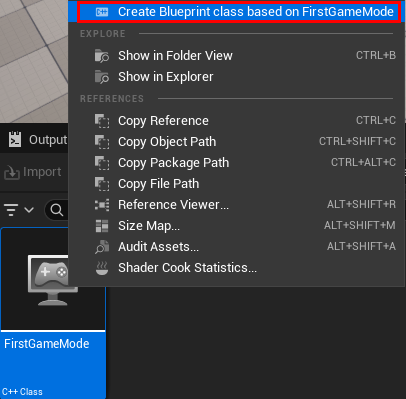 C++ 게임 모드 클래스를 활용하려면 일반적으로 블루프린트 클래스로 한번 더 감싸는 방식을 권장한다.(C++클래스 우클릭해서 블루프린트로 만들기)