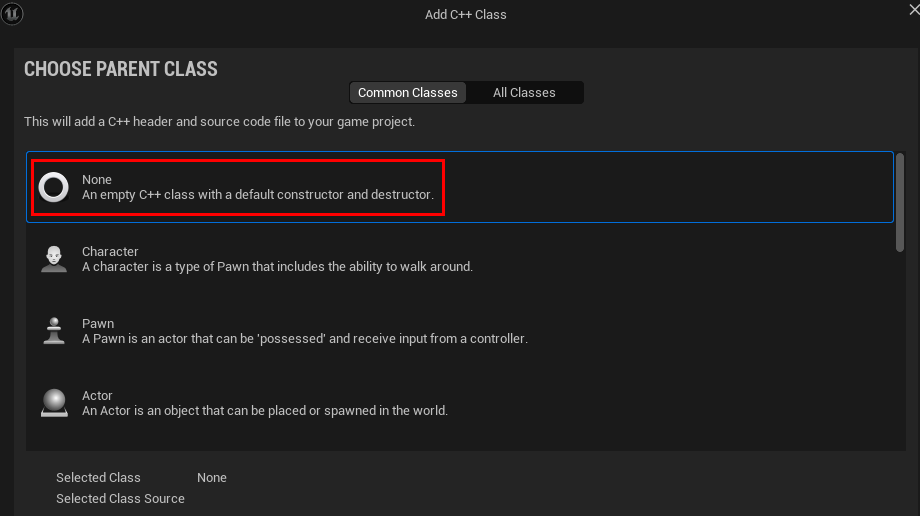 if (UClass* ActualClass = SelectedRow->ItemClass.Get())