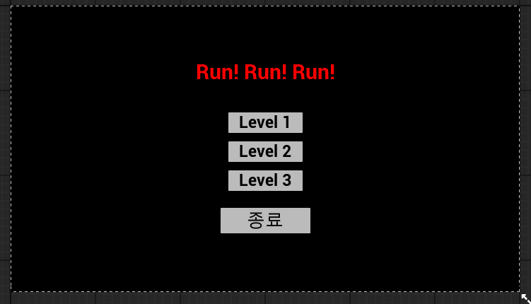 우선 버튼들을 배치 하고 레벨 버튼들은 Hidden으로 설정 해두고 Restart 버튼이 눌리면 Restart는 Hidden으로, 레벨 버튼들은 Visibale로 바뀌고 MainMenu의 위치도 살짝 아래로 내려가도록 구현했다.