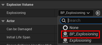 에디터에서 Explosioning에 BP_Explosioning을 넣는다.