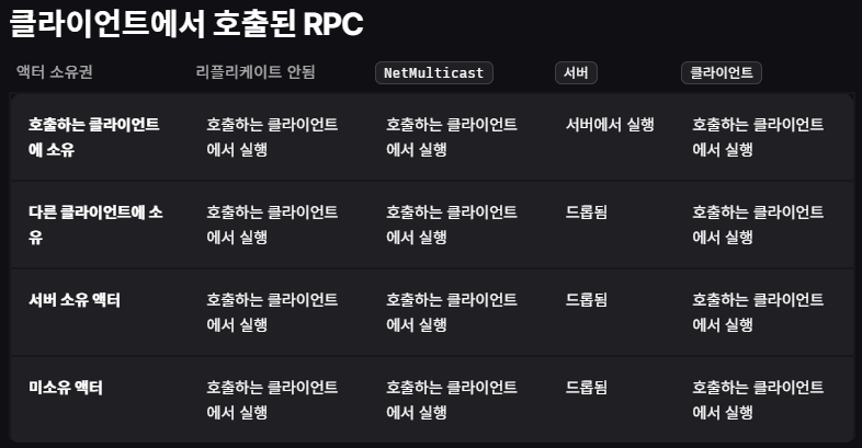 - ClientConnection이 소유하고 있는 액터(Client-Owned)에서 RPC가 호출되어야 한다.