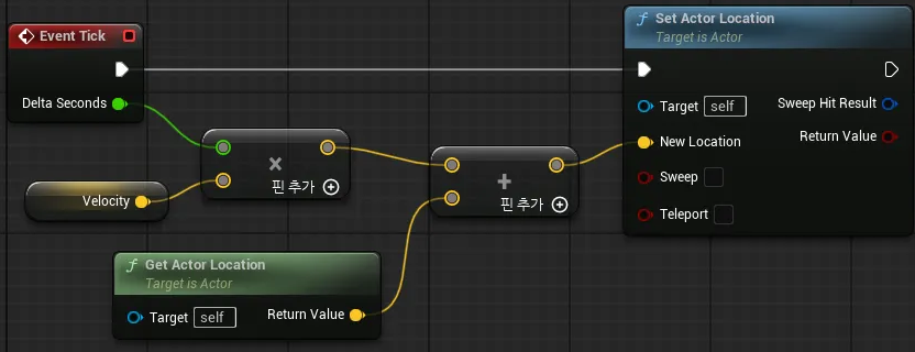 4. Car가 움직일 수 있도록 이벤트 그래프에서 이동하는 노드를 생성한다.