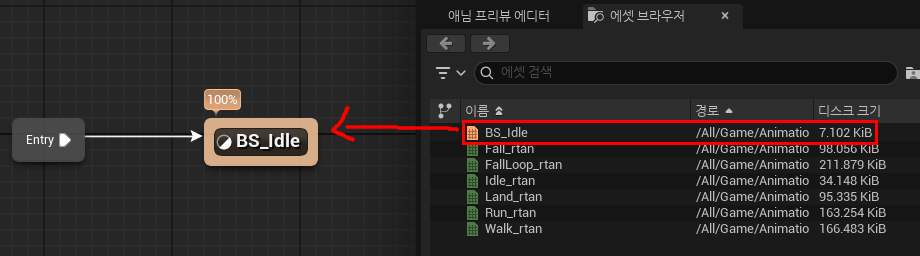 변수 스피드를 BS_Idle에 연결을 한다.