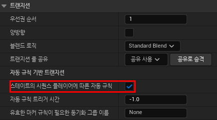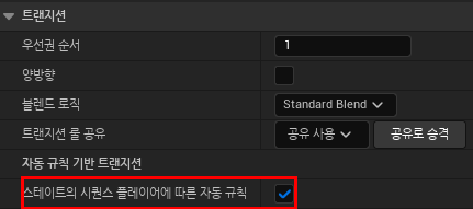 스테이트의 시퀀스 플레이어에 따른 자동 규칙에 체크를 한다.