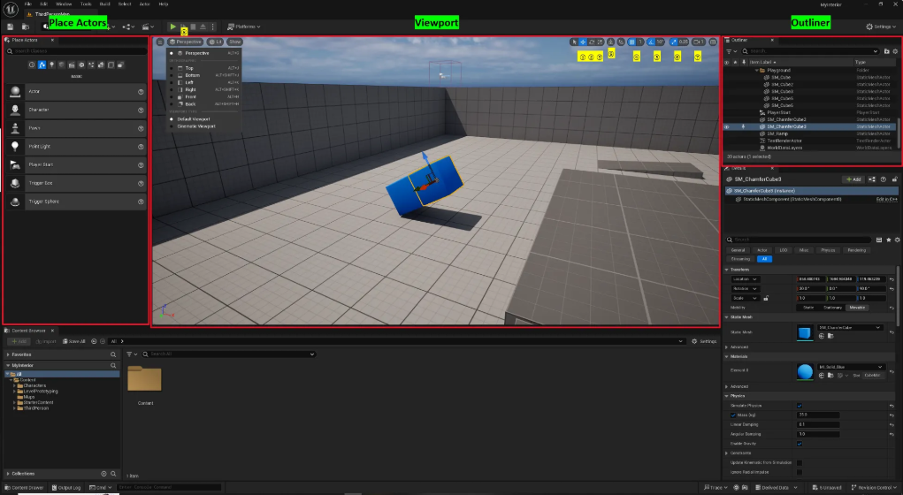 Viewport에서 Actor 클릭 후 F를 누르면 Actor에 시점 집중됨 (= Outliner에서 Actor 더블클릭)