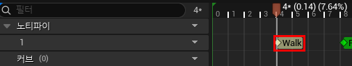 애니메이션을 프레임별로 보면서 땅을 밟는 동작이 될 때마다 스켈레탈 애셋에서 만든 노티파이를 추가해준다.