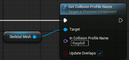Skeletal Mesh 컴포넌트를 복사하여 Set Collision Profile Name 노드를 생성하고