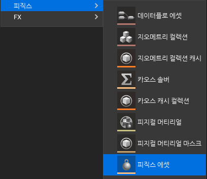 콘텐츠 브라우저에서 피직스 - 피직스 애셋을 생성한다.