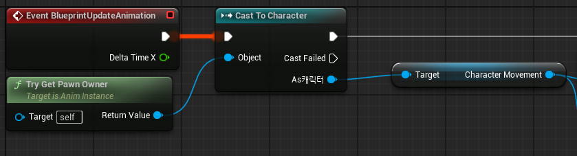 현재 AI의 애니메이션이 작동하지 않는데 이를 애니메이션 블루프린트의 Cast To BP_Character를 Cast To Character로 변경하여 작동하도록 수정할 수 있다.(AI캐릭터는 BP_Character가 아니기 때문)