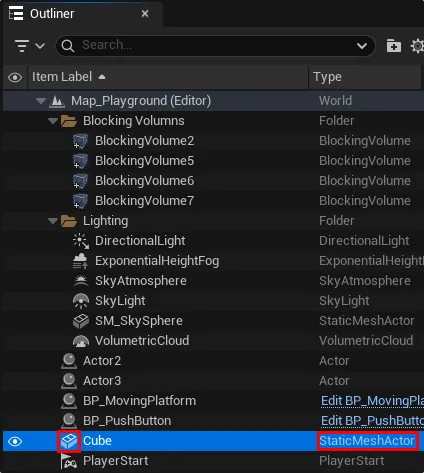 - 건물, 캐릭터, 라이트, 카메라 등 눈에 보이는 오브젝트뿐 아니라 트리거(Trigger)나 볼륨(Volume)처럼 눈에 보이지 않는 것도 모두 액터의 일종이다.
