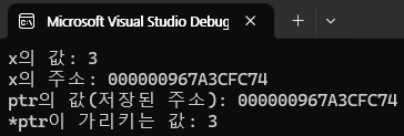 int* ptr = &x; // 포인터 ptr에 x의 주소 저장