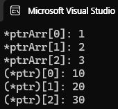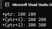 cout << "*(ptr+2): " << *(ptr+2) << " " << ptr[2] << endl; // 300 (arr[2] 값)