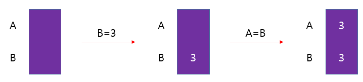 하나의 변수를 다른 변수에 대입하면 새로운 메모리 공간에 동일한 값이 복제가 된다.