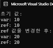 예를 들어, int& ref = var; 처럼 사용할 수 있습니다. 이렇게 하면 ref의 값 변경 시 var의 값도 변경 됩니다.