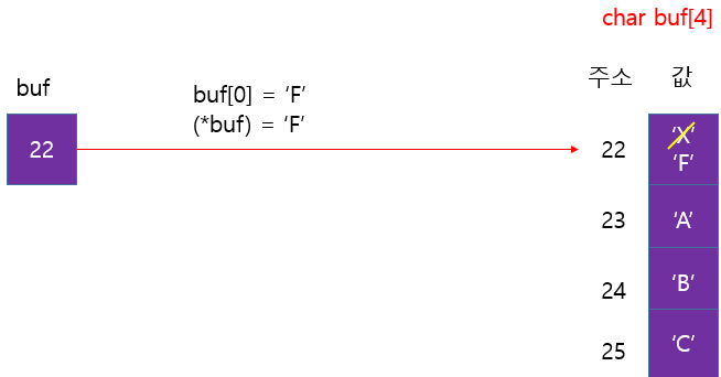 buf[1] = *(buf+1) = 'A', buf[2] = *(buf+2) = 'A',즉 buf[k] = *(buf + k) 이다.