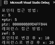 cout << "포인터로 변경 후 x: " << x << endl; // 10