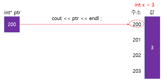 cout << "ptr: " << ptr << endl; // x의 주소값