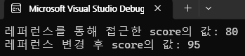 // 3. 레퍼런스 score_ref를 사용하여 score 변수의 값을 출력하세요.
