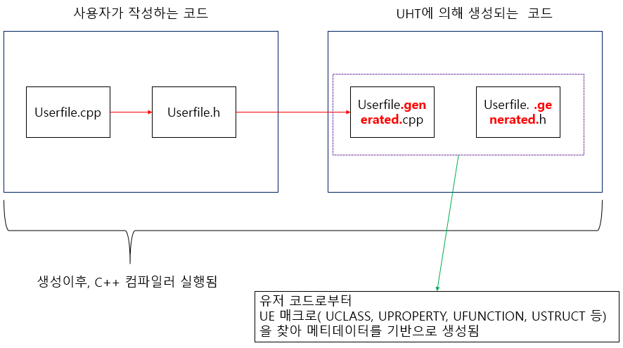 UHT는 C++ 컴파일러가 수행되기 되기 전에 동작합니다.