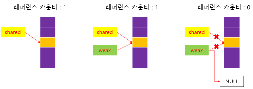 shared_ptr은 순환 참조 문제가 발생할 수 있는데 발생시 순환 고리중 하나를 week_ptr로 변경하면 이 문제를 해결할 수 있다.
