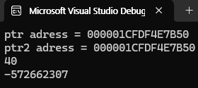 cout << "ptr2 adress = " << ptr2 << endl; //ptr2의 주소값 출력