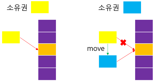 아래 그림처럼 move를 통해 소유권을 이동하는 식으로 관리된다.