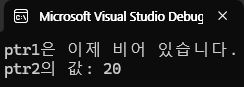 cout << *ptr2 << endl; // ptr 해제 후 ptr2의 값 출력