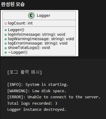 2. 로그 기록기는 단 하나의 인스턴스만 존재해야 하며, unique_ptr를 통해 이를 보장해야 합니다.
